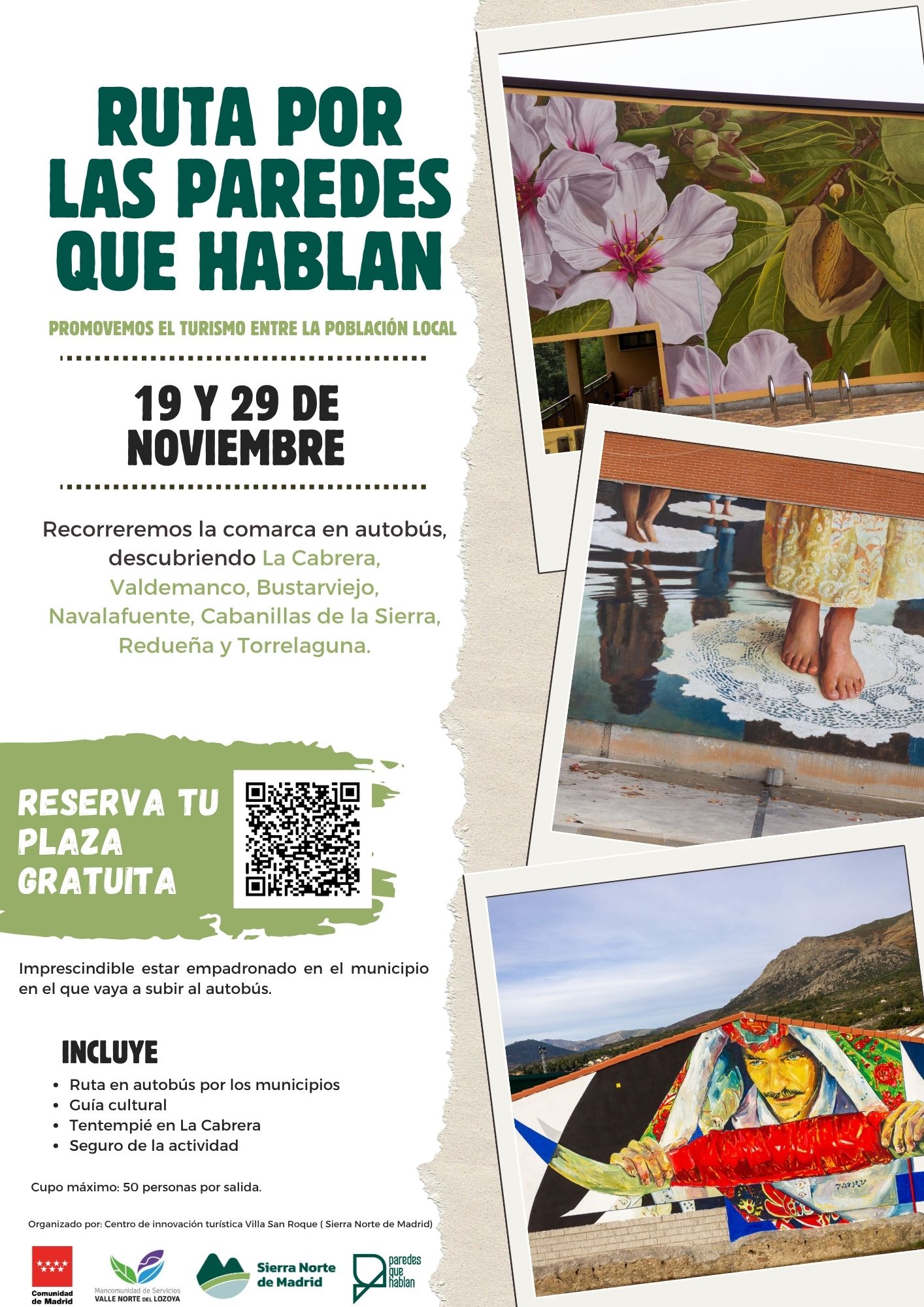 📢 RUTA GRATUITA: PAREDES QUE HABLAN 🚌 Miércoles 19 y Sábado 29 de noviembre 🚏 Subida en Redueña a las 10:28 h en el centro polivalente donde el mural 🔄 Ruta circular – bajada en el mismo punto 🎨 Recorrido de murales de arte urbano ☕ ...