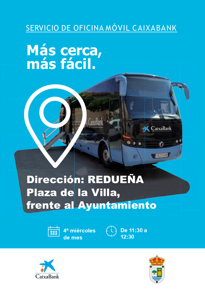 OFICINA MÓVIL DE CAIXABANK Hoy, miércoles 19 de noviembre de 2025, la oficina móvil de CaixaBank estará a vuestra disposición en la Plaza de la Villa, frente al Ayuntamiento, en horario de 11:30 a 12:30 horas. Podréis realizar las siguientes operaciones sin necesidad de ...