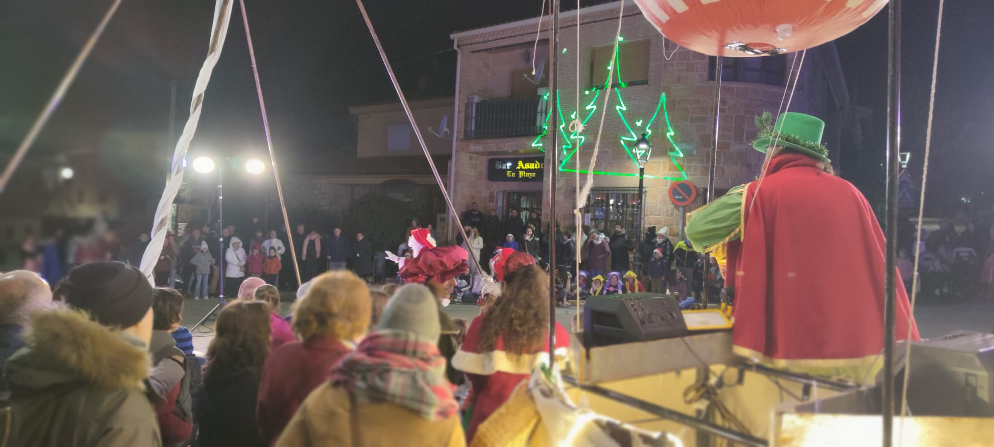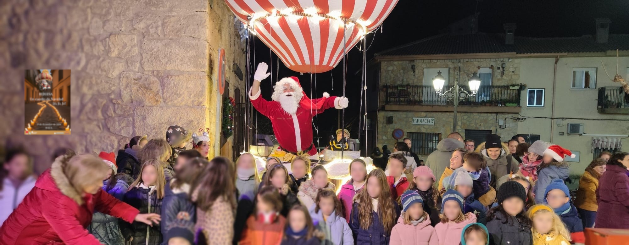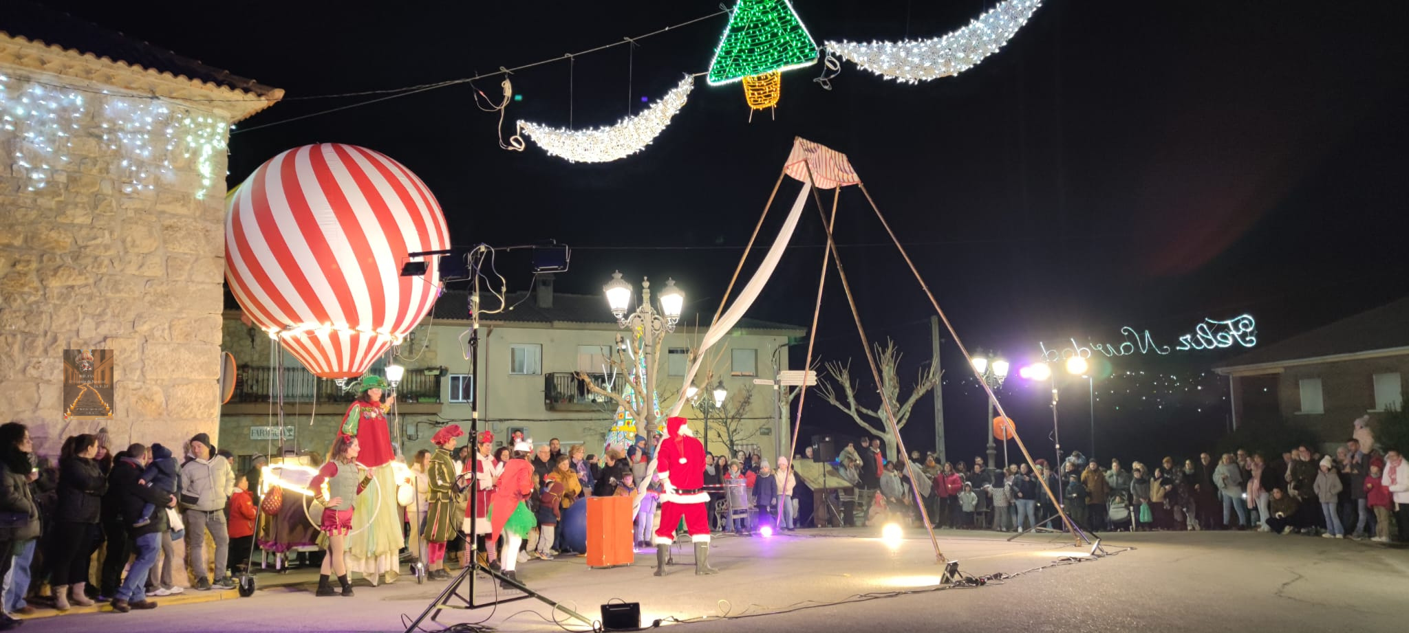 Papá Noel aparecerá volando en un globo proyectado en el cielo del municipio de Redueña a través de un holograma iluminado para no perderse y seguir fielmente el rumbo de su viaje. Por avatares del destino tendrá que descender a tierra. En este momento, y junto a un grupo de elfos, actuará en un pasacalles circense y musical para todos los presentes y en especial para los más pequeños, que le esperan con ilusión y entusiasmo para encomendarle una importante misión: ofrecerle sus mejores deseos para que sean repartidos entre las personas más vulnerables en el mundo, principalmente los niños.