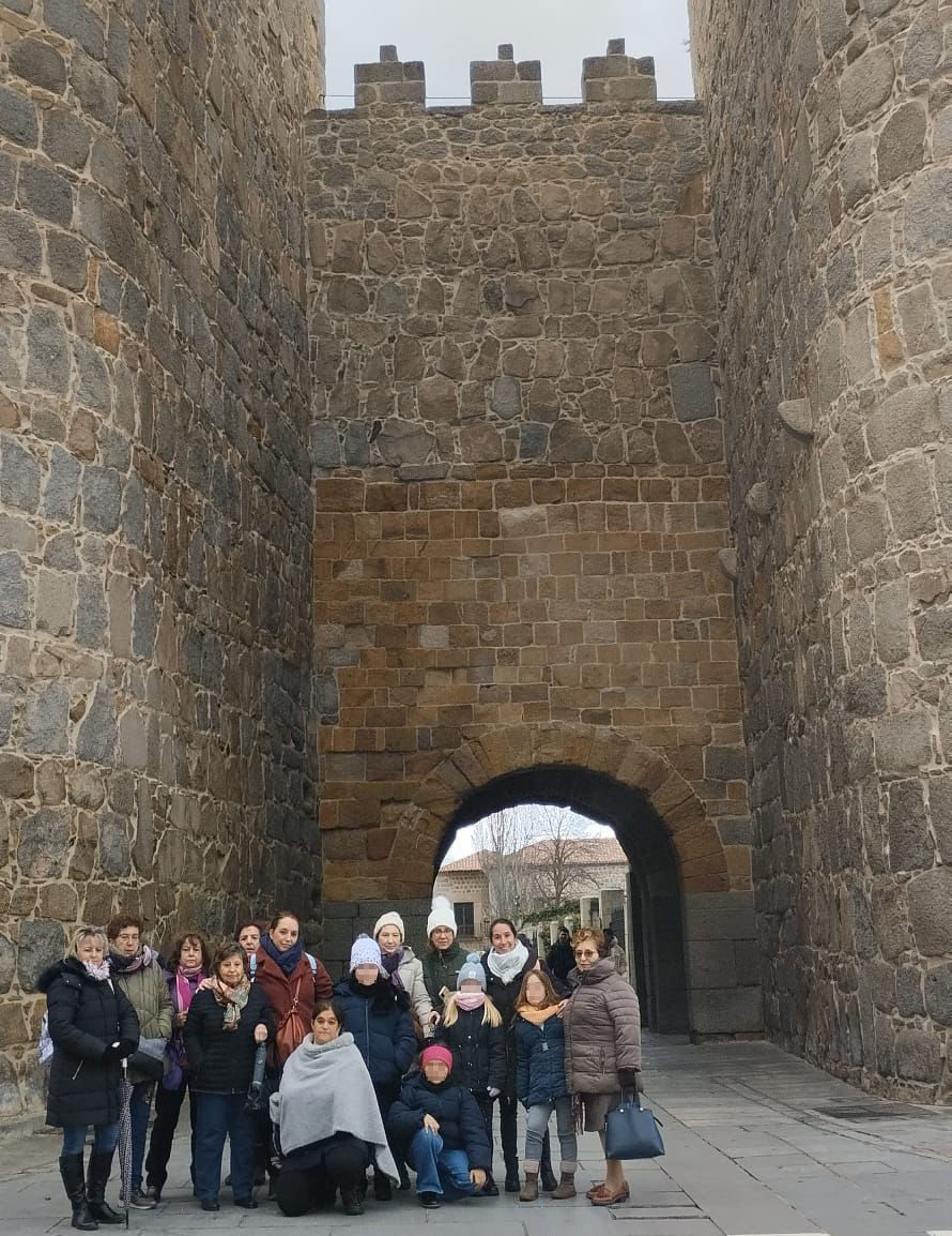 El domingo 10 de marzo, la celebración del Día de la Mujer se trasladó a Ávila. Las asistentes a la excursión visitaron la muralla, uno de los recintos amurallados de etapa medieval mejor conservados de España con un perímetro de 2.515 metros, 2.500 almenas, 87 cubos o torreones y 9 puertas; la catedral de Cristo Salvador, proyectada como templo y fortaleza, siendo su ábside uno de los cubos de la muralla de la ciudad, primera catedral gótica de España; la basílica y la casa Natal de Santa Teresa de Jesús (el edificio fue construido a principios del siglo XVII sobre la casa natal de Santa Teresa de Jesús bajo la advocación de la orden de los carmelitas descalzos); la plaza del Mercado Chico; y la basílica de los Santos Vicente, Sabina y Cristeta, un templo románico, el de mayor tamaño e importancia de la ciudad después de la catedral del Salvador y una de las obras más destacadas de este estilo arquitectónico de todo el país. En el año 1985, la UNESCO declaró a la muralla Patrimonio de la Humanidad, junto con el casco antiguo y varias iglesias situadas extramuros.