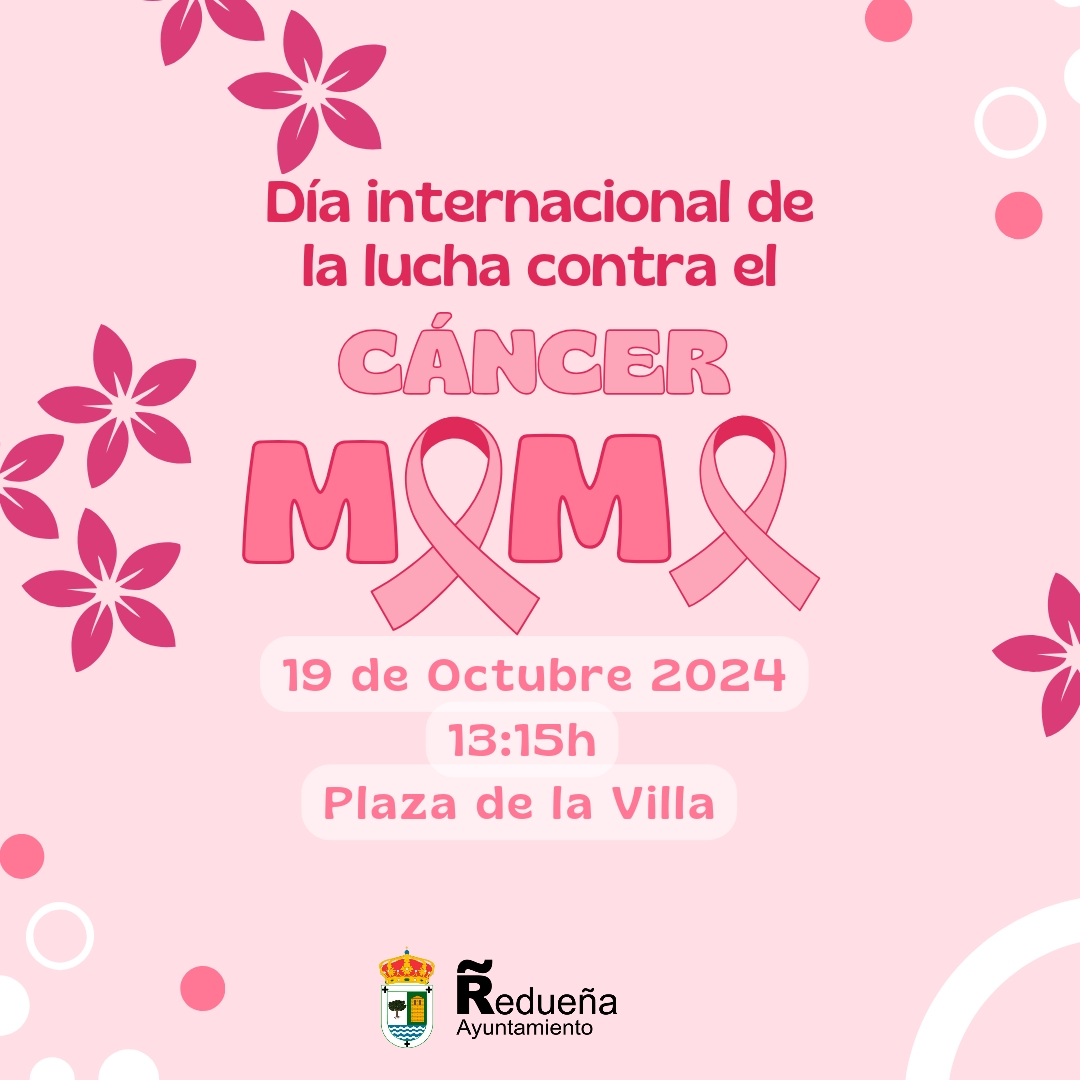 El sábado 19 de octubre se celebra el Día Mundial del Cáncer de Mama. Para apoyar la lucha contra esta enfermedad y su erradicación, construiremos entre todos ese día un gran lazo rosa en la plaza del pueblo a las 13:15 h.