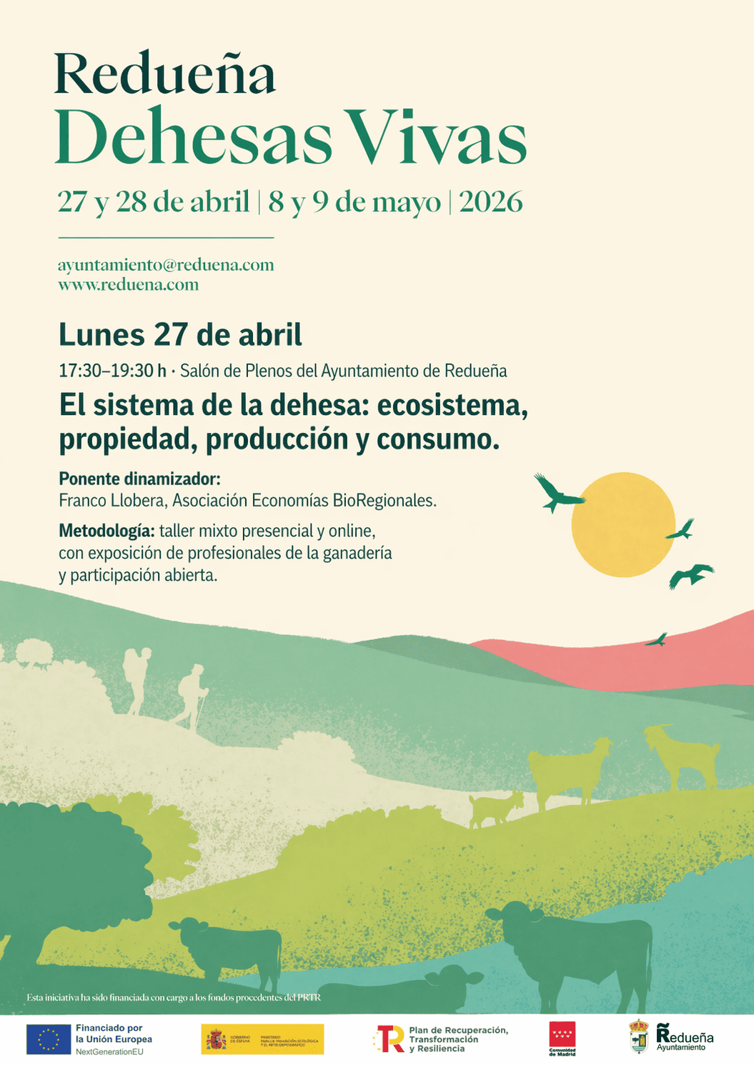 El programa tiene como objetivo abrir una reflexión compartida entre vecinos y vecinas de Redueña, profesionales de la ganadería, personal técnico, investigadores y representantes municipales de la Sierra Norte, en torno al futuro de la dehesa y la ganadería regenerativa.